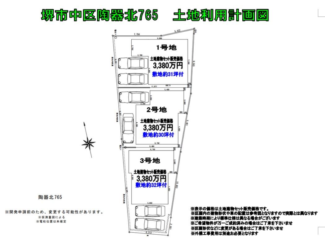 1-2| 陶器北765(全3区画) 建築条件付き土地 土地 + 建物 3380万円 |